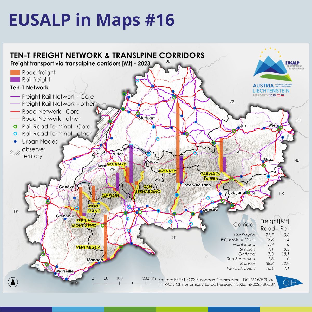 EUSALP In Maps #16: Transalpine Güterkorridore