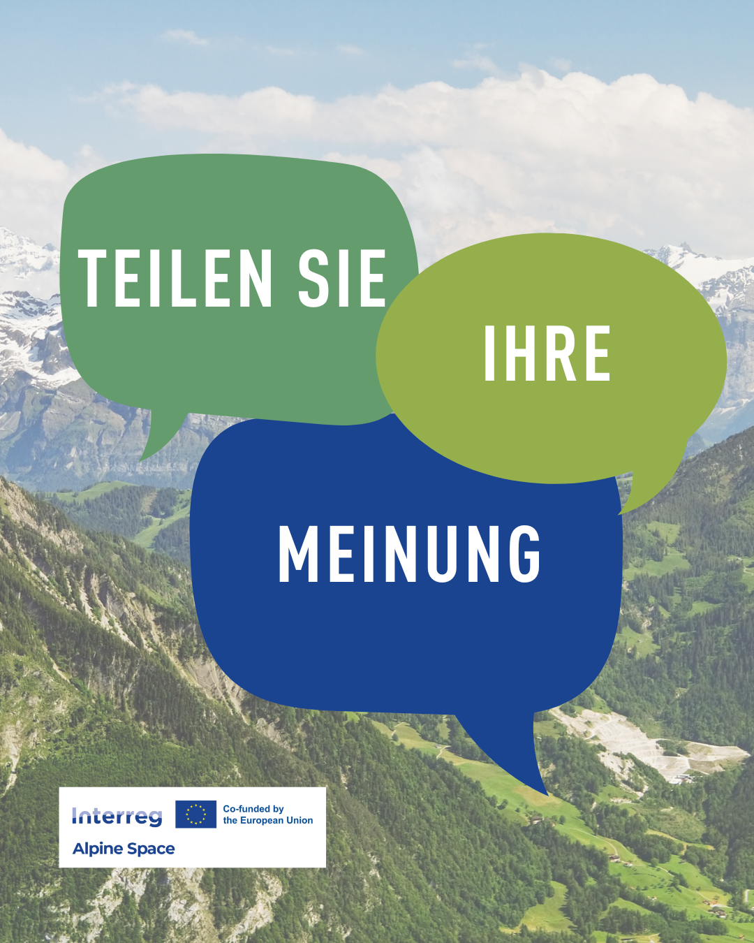 Wir möchten Sie nochmals auf die Umfrage des Alpenraumprogramms zur Sichtbarkeit der Kommunikationsmaßnahmen des Programms aufmerksam machen. Noch bis Ende September können Sie Ihr Feedback geben, egal ob Sie mit dem Alpenraumprogramm vertraut sind oder nicht. Jedes Feedback zählt! Helfen Sie mit, die Sichtbarkeit der EU-Zusammenarbeit zu verbessern! Die Umfrage ist anonym und auch in Deutsch verfügbar.