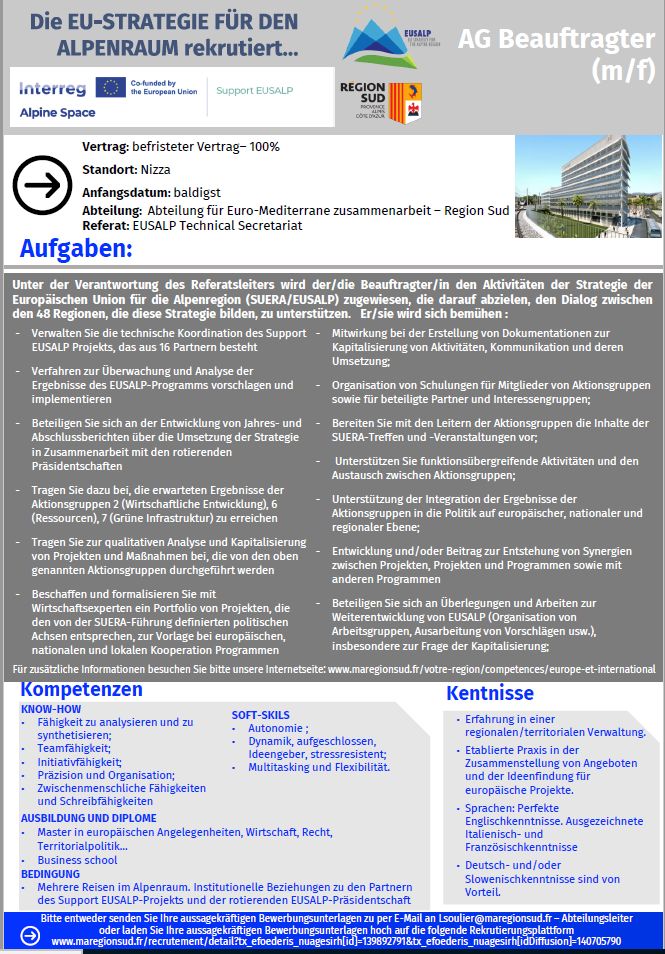 Stellenanzeige für das Technische Sekretariat der EUSALP